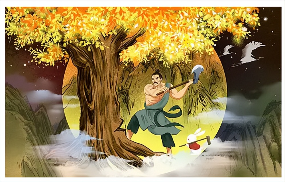 Wu Gang cuts down the cassia tree Chang'e flies to the moon